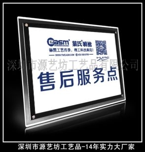 產(chǎn)品名稱:亞克力迷你廣告燈箱定做 亞克力燈箱因款式超薄、造型簡約、廣告內容易更換、透明似水晶、價格實惠等,博得了很多客戶的青睞。亞克力超薄燈箱的尺寸可隨意定制,小至A5,大至1米二等,亦可加個底座做桌面廣告燈箱。造型就不止單單的正方形和長方形,造型可以是任何形狀,隨你定制。深圳市源藝坊工藝品有限公司,我們有實力、有團隊、有規(guī)模、有經(jīng)驗、亞克力制品定做,就選深圳源藝坊!咨詢電話:0755-23192901 |