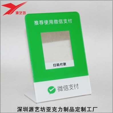產(chǎn)品名稱:二維碼支付牌 微信付款牌定做工廠 規(guī) 格:115*60*60mm 材 質(zhì):3mm亞克力板 用 途:門店收銀專用微信支付提示牌、餐飲店請勿吸煙牌定做、 工 藝:開料、激光雕刻、拋光、折彎、粘接、 關(guān)于價格:阿里巴巴上面的價格均為樣品費用的價格,實際價格請聯(lián)系我們業(yè)務員報價。 報價依據(jù):根據(jù)客戶提供款式、尺寸、板材厚度、成品的包裝方式算價格!給您帶來不便請原諒。 產(chǎn)品說明:本公司所有產(chǎn)品均為定做,沒有現(xiàn)貨!本公司支持亞克力材質(zhì):來圖定做、來樣定做!深圳前三亞克力制品加工廠家,您值得信賴,我們的品質(zhì)至上!團隊實力雄厚!價格優(yōu)!